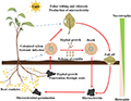 The story of Fusarium wilt often begins deep in the soil. The long-dormant Verticillium dahliae hides in the root zone in the form of microsclerotia until the substances secreted by the cotton root system "awaken" it. After being stimulated, the microsclerotia germinate into hyphae. Some directly penetrate the root epidermis, while others take advantage of the natural pores to infiltrate the cortex and finally enter the vascular tissue all the way (Zhu et al., 2023). Once inside the vessels, the fungus begins to multiply in large numbers, producing conidia. These spores are carried to the above-ground parts along the transpiration flow, causing systemic infection (Figure 1).