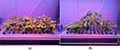 Figure 1 Soybean seedlings: (a) A0_11, high light intensity, uniform PPFD distribution; (b) B0_11, nonuniform PPFD distribution. Discoloration of leaves indicates nutrient deficiency symptoms (Adopted from Huynh et al., 2025)