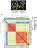 ![]() Figure 1 Global transcriptome analysis of 48 samples from six contrasting heat stress-responsive chickpea genotypes (Adopted from Kudapa et al., 2023) Image caption: (A) Plant phenotype of chickpea heat-tolerant (ICCV 92944) and -sensitive (ICC 4567) genotypes in response to heat stress. (B) Heatmap for the transcriptome profiling has been shown based on the hierarchical clustering of Pearson’s correlations (R) for the 48 samples. The color scale indicates the degree of correlation. Samples were clustered based on their pairwise correlations. Genes with a normalized expression level FPKM≥1 in at least one of the 48 samples analyzed were designated as expressed and shown in the figure (Adopted from Kudapa et al., 2023) |