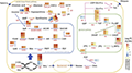 Figure 1 Alterations of H3K4me3 in nitrogen and carbon metabolic pathway between nodules and remaining roots. Heatmaps show fold change of expression and H3K4me3 level in genes along ureide and purine biosynthesis pathway between nodules and remaining roots. Red color indicates higher level while blue color indicates lower level in nodules. 2-OG, 2-oxoglutarate; Gln, Glutamine; Glu, Glutamate; GOGAT, Glutamate synthetase; GS, Glutamine synthetase; NH4+, Ammonium; R5P, Ribose 5-phosphate; PRS, Phosphoribosylpyrophosphate synthetase; PRPP, 5-phosphoribosy1-1-pyrophosphate; PPAT, Glutamine phosphoribosyldiphosphate amidotransferase; RRA, 5-phosphoribosylamine; GARS, GAR synthetase; GAR, 5-phosphoribosylglycinamide; GART, GAR transfromylase; FGAR, 5-phosphoribosyl-N-formylglycinamide; FGAMS, FGAM synthetase; FGAM, 5-phosphoribosyl-N-formylglycinamidine; AIRS, AIR synthetase; AIR, 5-phosphoribosylaminoimidazole; AIRC, AIR carboxylase; CAIR, 1-(5-phosphoribosyl)-5-amino-4-carboxyimidazole; SAICARS, SAICAR synthase; SAICAR, 1-(5-phosphoribosyl)-4-(N-succinocarboxamide)-5-aminoimidazole; ADSL, adenylosuccinate lyase; AICAR, 1-(5-phosphoribosyl)-5-amino-4-imidazolecarboxamide; AICART/IMPC, AICAR transformylase/IMP cyclohydrolase; IMP, inosine monophosphate; IMPD, IMP dehydrogenase; XMP, Xanthosine monophosphate; 5NT, 5′-nucleotidase; PNP, purine-nucleoside phosphorylase; NSH2, nucleoside hydrolase 2; XA, xanthine; XDH, Xanthine dehydrogenase; UA, uric acid; UO, urate oxidase(uricase); 5HTP, 5-hydroxyisouratre; HIUH, hydroxyisourate hydrolase; OHCU, 2-oxo-4-hydroxy-4-carboxy-5-ureidoimidazoline decarboxylase; OHCUD, OHCU decarboxylase; AT, allantoinase; Suc, Sucrose; SS, Sucrose synthase; AI, Alkaline invertase; Fru, Fructose; HK, hexokinase; FK, fructokinase; G6P, glucose-6-phosphate; PGI, glucose-6-phosphate isomerase; F6P, fructose-6-phosphate; PFK, 6-phosphofructokinase phosphohexokinase; F1,6BP, fructose 1,6-bisphosphate; Aldo, aldolase; GADP, glyceraldehyde 3-phosphate; TPI, triosephosophate; DHAP, dihydroxyacetone phosphate; GAPDH, glyceraldehyde-3-phosphate dehydrogenase; 1,3BPG, 1,3-bisphosphoglyceric acid; PGK, phosphoglycerate kinase; 3PG, 3-phosphoglycerate; PGM, 2,3-bisphosphoglycerate-dependent phosphoglycerate mutase; 2PG, 2-phosphoglycerate; Enol, enolase; PEP, phosphoenolpyruvate; PEPC, PEP carboxylase; OAA, Oxaloacetate; MDH, malate dehydrogenase. N = nodules, RR = remaining roots (Adopted from Wang et al., 2020) |